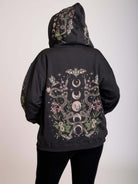 This zip hoodie features our custom garden moon phase artwork on the back and down the sleeves & hood.