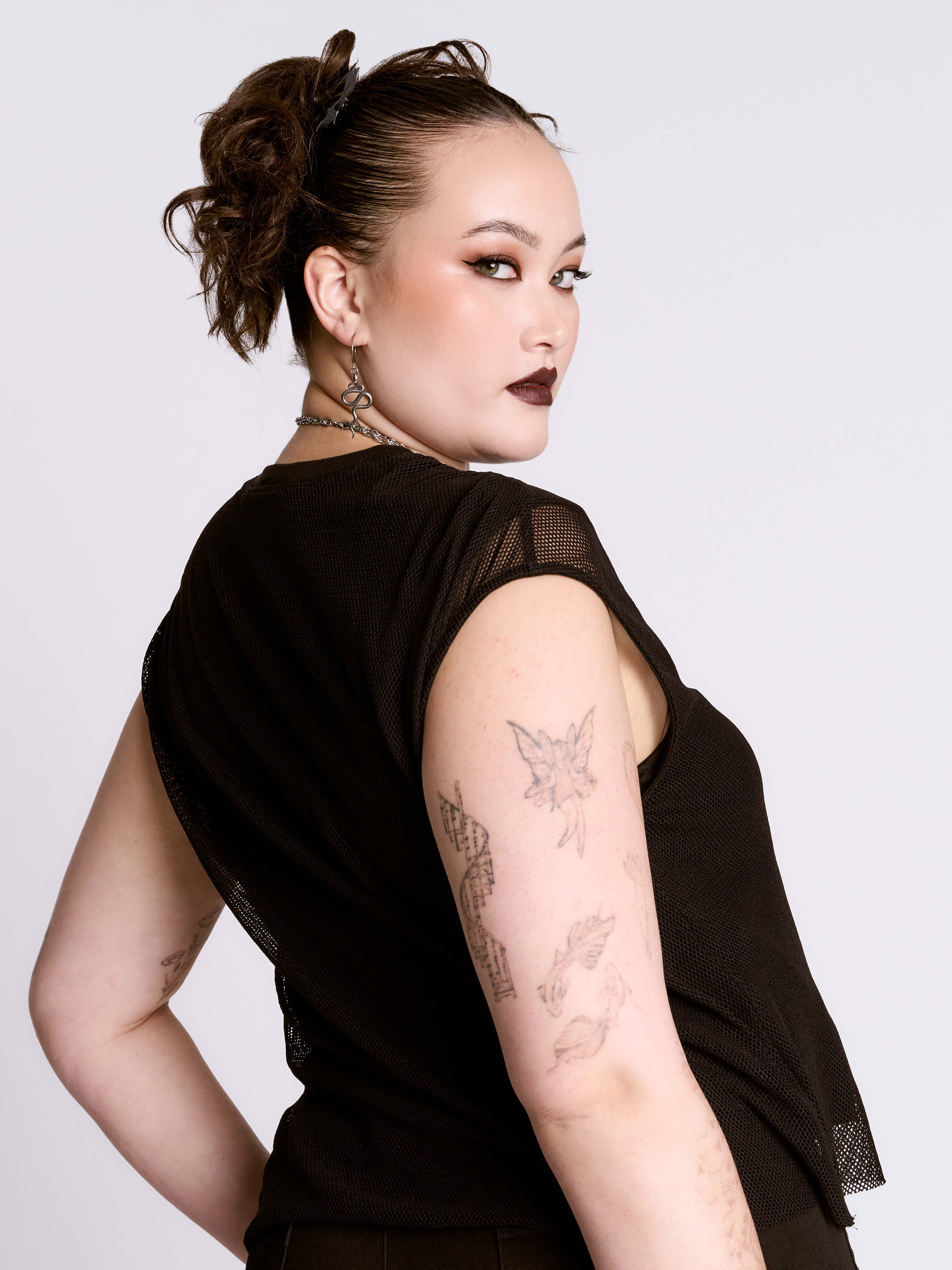 Officially licensed fishnet layered tshirt.