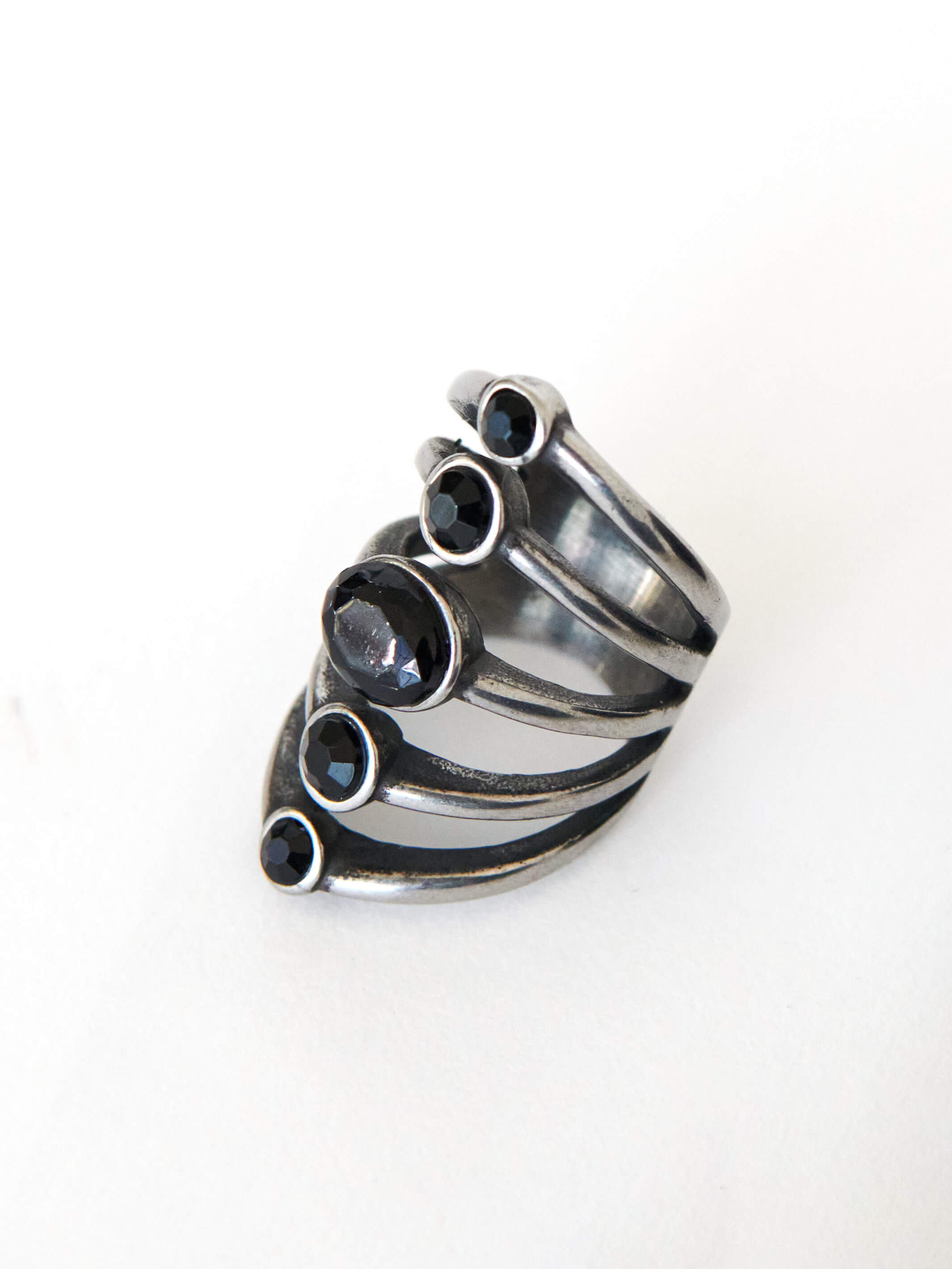 Our new custom-designed ring with black stones inset on stainless steel.